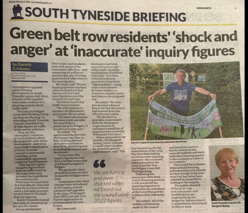 The Working Group along with Geraldine (Cllr Kilgour), attended the majority of sessions. Due to set procedures that govern the Examination in Public process, members of the working group were only allowed to give verbal representations for the issues that were initially mentioned in the Regulation 19 statements made by residents during the initial Consultation period between January 15th and March 3rd 2024. The main day related to Fellgate was 15th January 2026. All written submissions will be treated just the same as the verbal representations by the inspector.